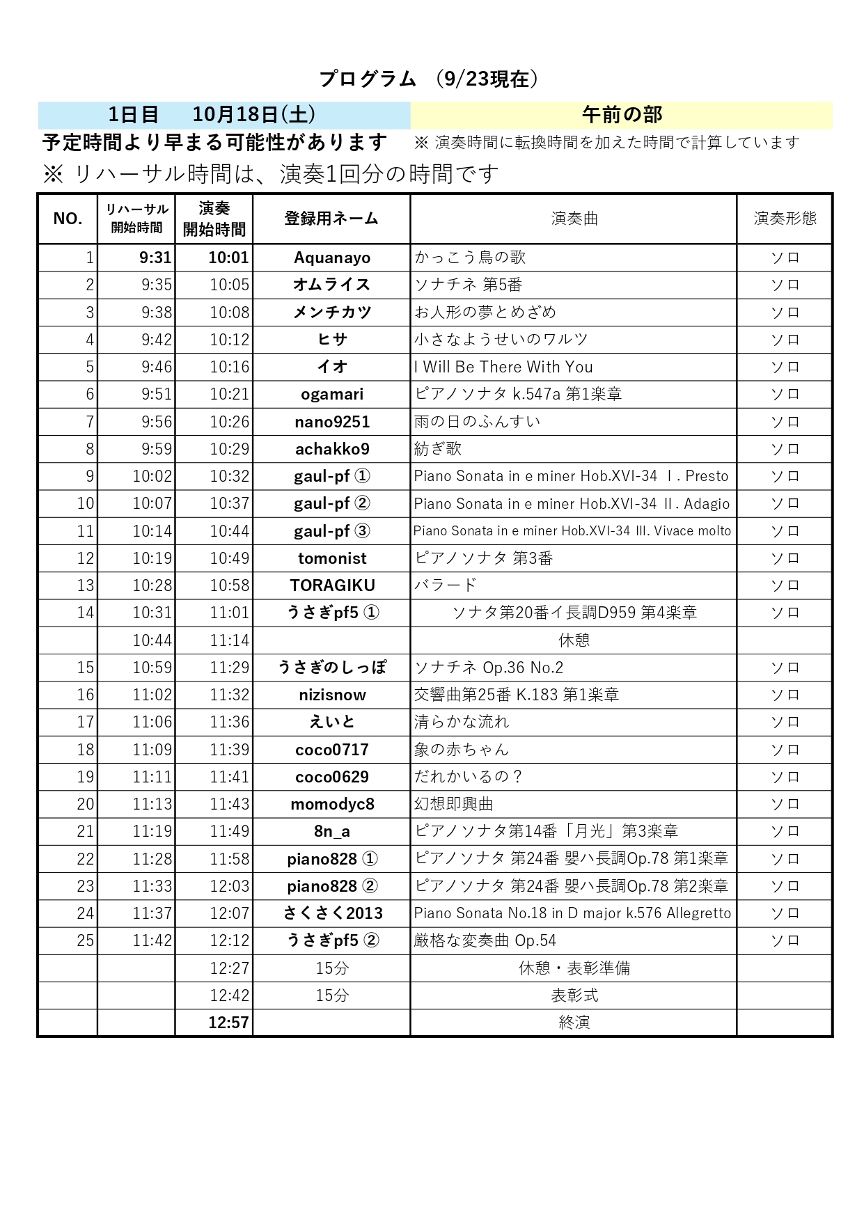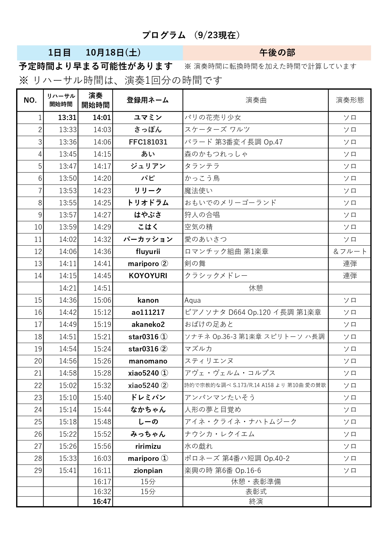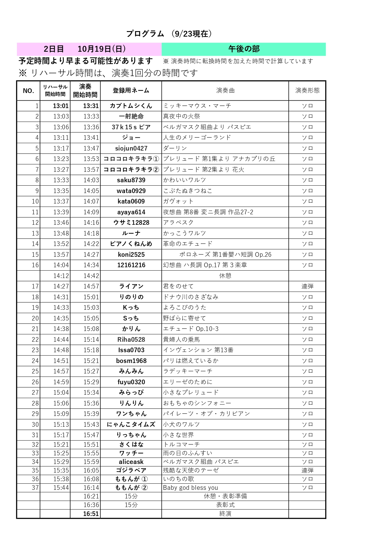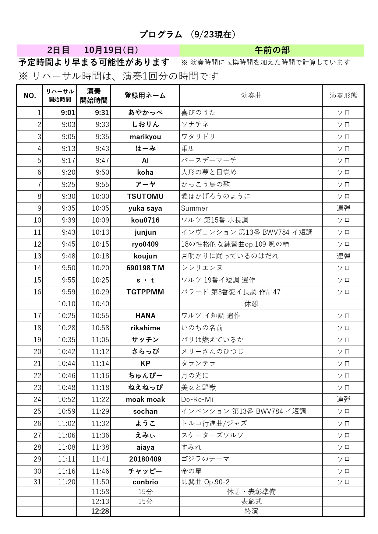 • 自主事業 第19回こけけピアノフェスティバル エンジョイ・ザ・ピアノ演奏順発表