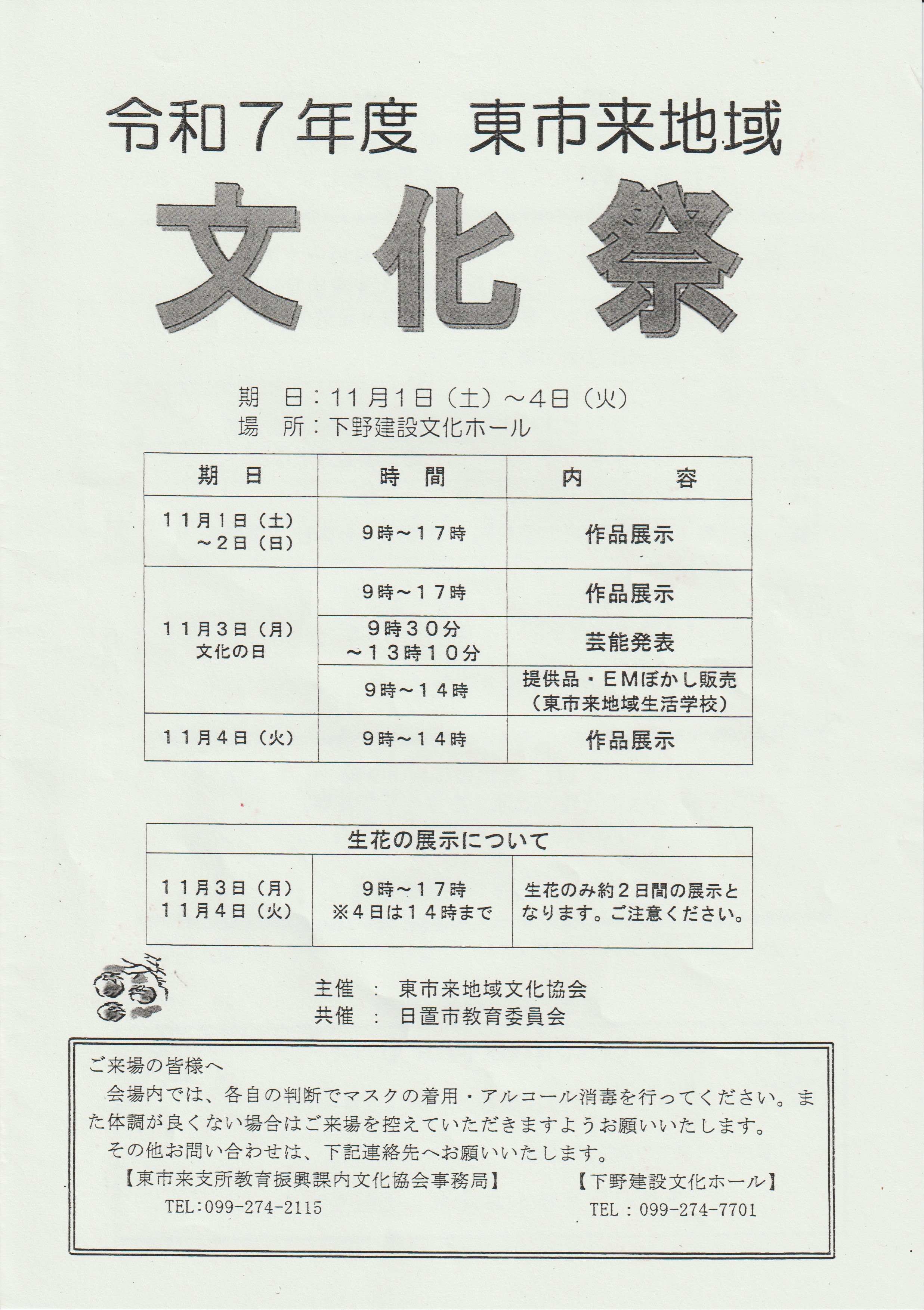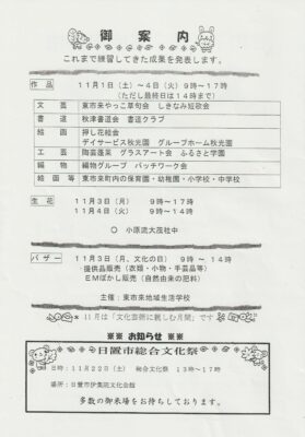 舞台発表は11月3日(月・祝) 9:30~13:10 開催予定 入場無料 作品展示は11月1日(土)~4日(火) 9時~17時(最終日は14時まで)