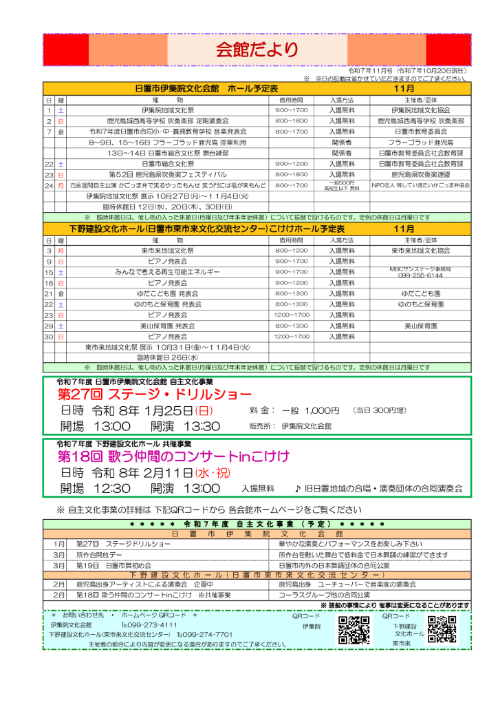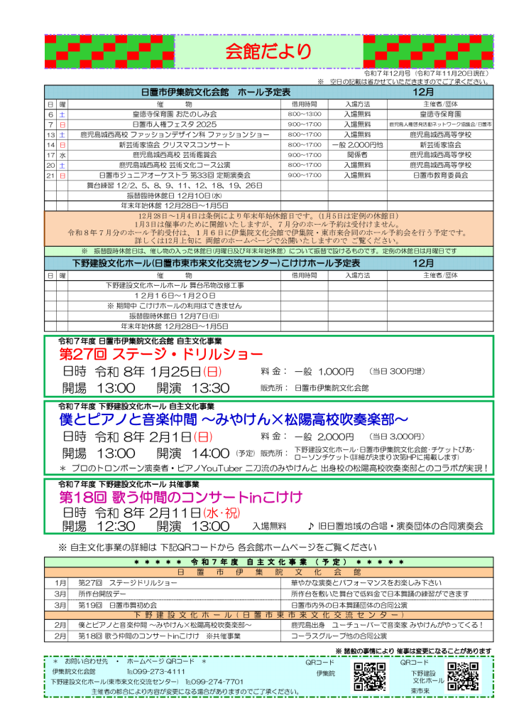 日置市伊集院文化会館に関するご質問等はお問い合わせフォームからお気軽にご連絡ください。