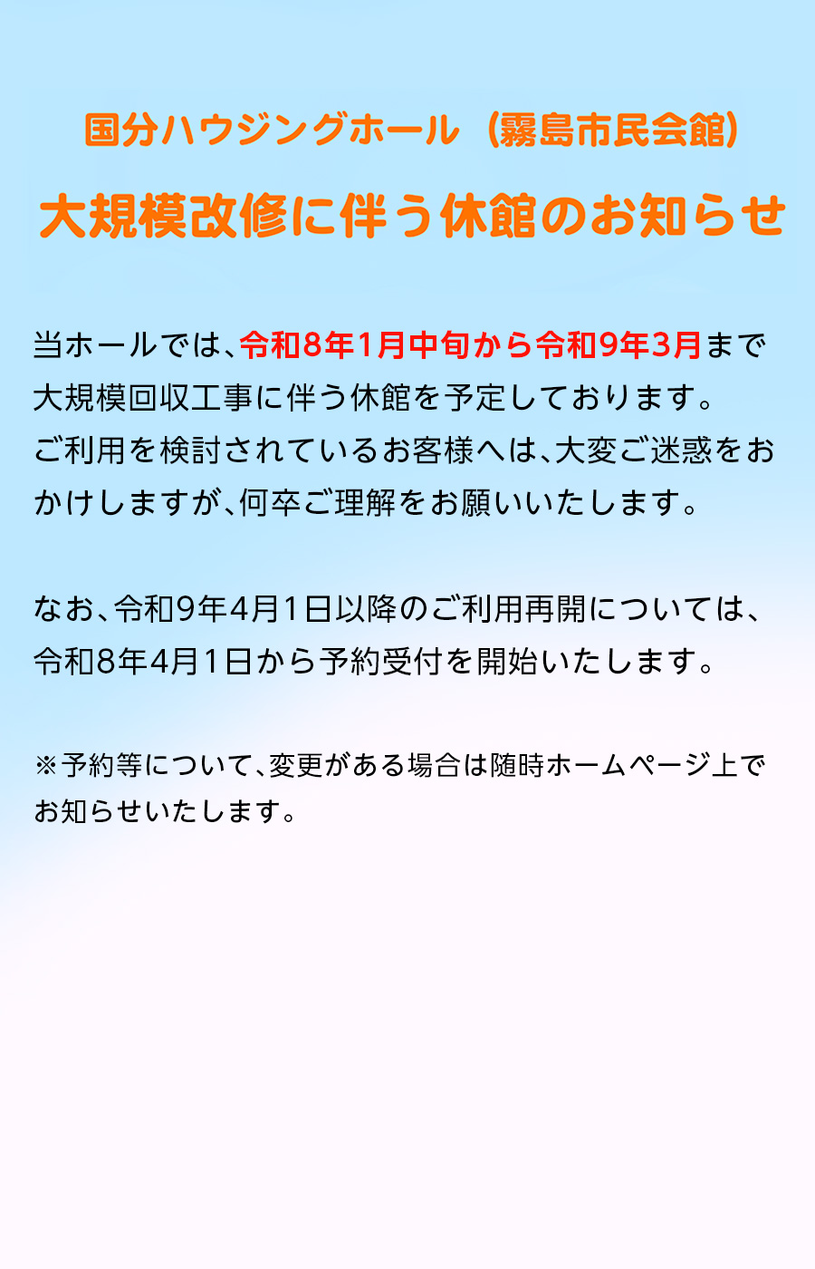 令和7年度 国分ハウジングホール(霧島市民会館)